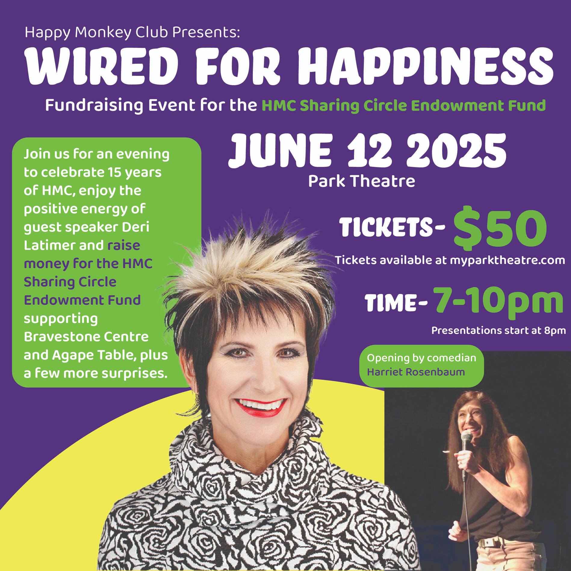 Created a poster for 'Wired for Happiness' Fundraising event by Happy Monkey Club. The client required that all relevant information was included in a 600x600px image that could be shared on social media and the ticket website. I used the colours from the Happy Monkey Club branding to create a fun but also professional design.